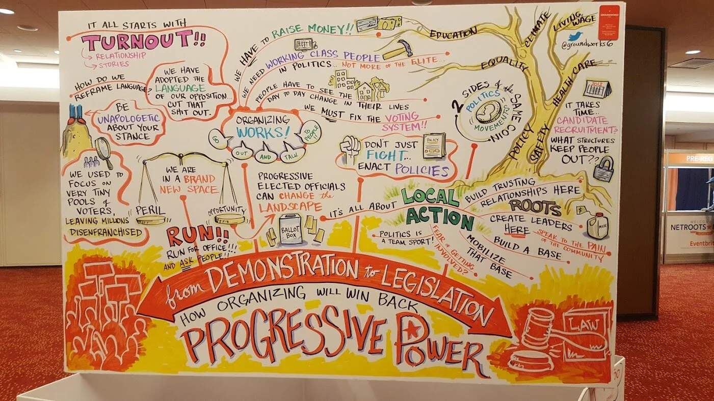 Work by Ground Works graphic facilitator Matt Sullivan, inspiring me to take my own notes more creatively.